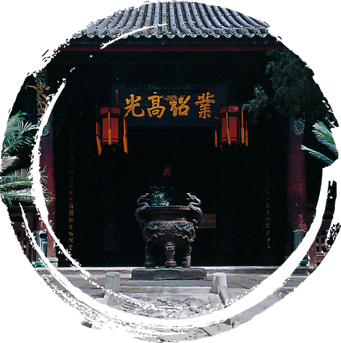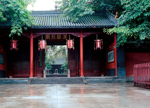 A horizontal plaque above the two doors read the four characters "Ming Liang Qian Gu," which was written by Sichuan governor Wu Ying from the reign of Kangxi Emperor of Qing dynasty, meaning "wise lord and ministers to be remembered for eternity".